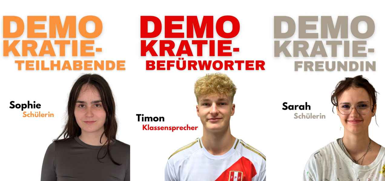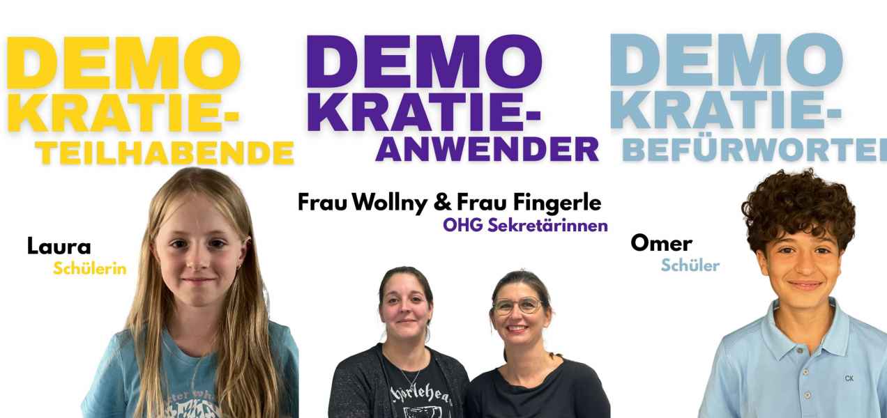 Im Rahmen der Projekttage am OHG haben wir, Alessandra Saur und Ilia Lebherz aus der Jahrgangsstufe 1, in der Projektgruppe „Das OHG ist bunt" ein eigenes Teilprojekt entwickelt. Dabei ließen wir uns von der bundesweiten Kampagne „DEMOKRATIE - AKZEPTANZ - VIELFALT" (https://demokratie-akzeptanz-vielfalt.de) inspirieren, um die folgende Frage zu beantworten: Welcher Demokratietyp steckt in dir?