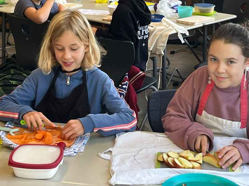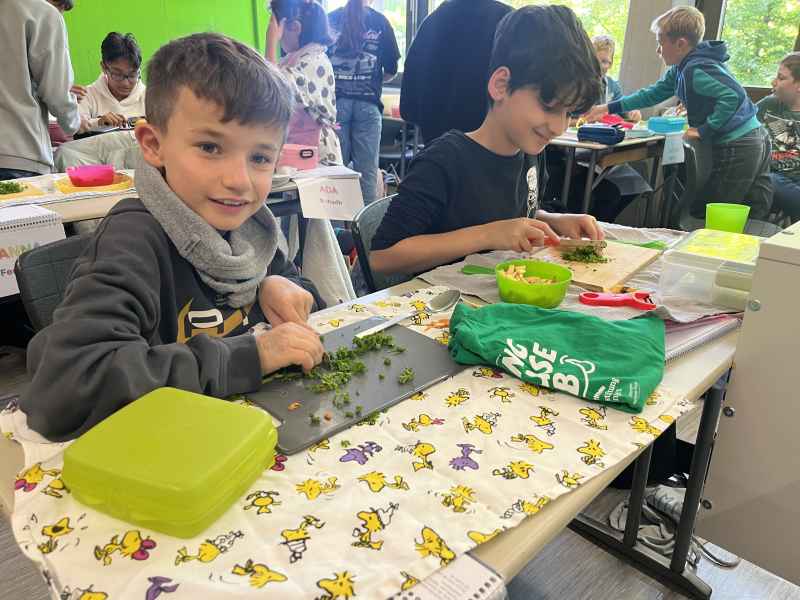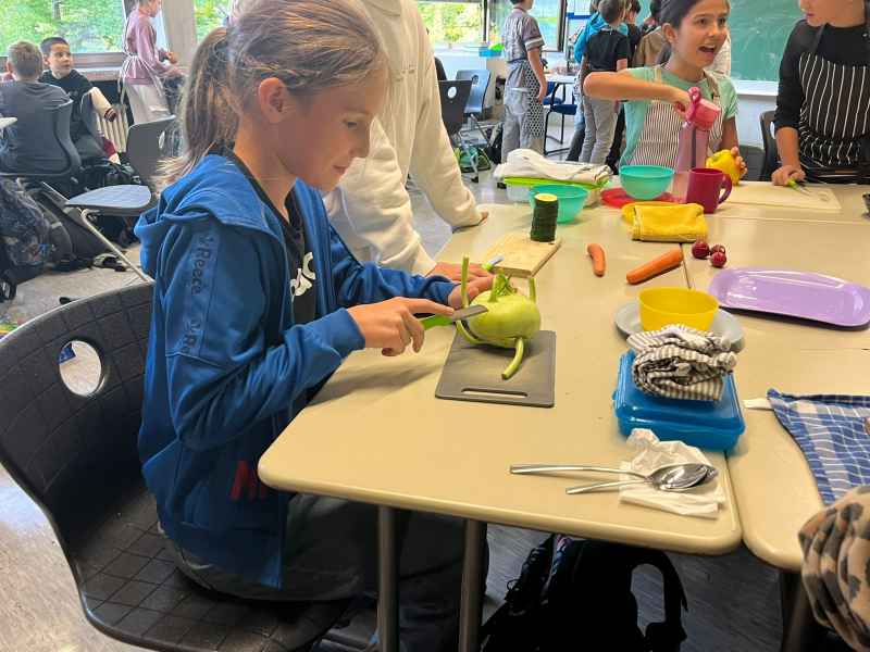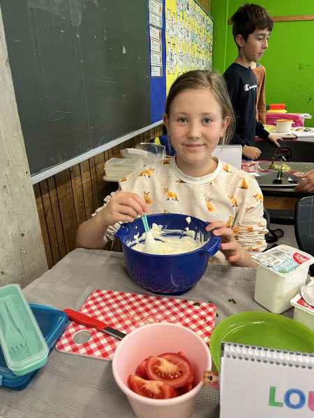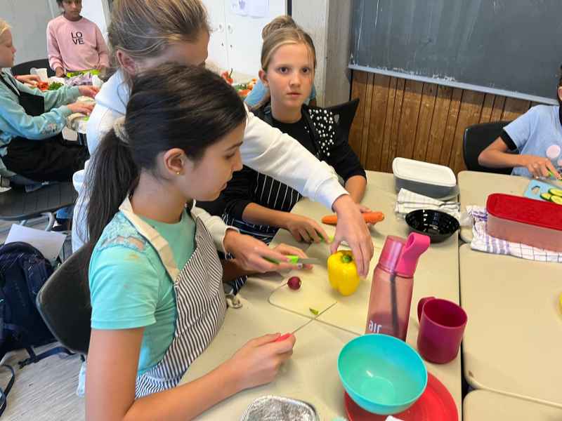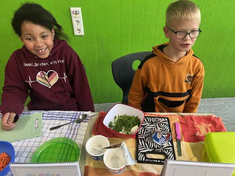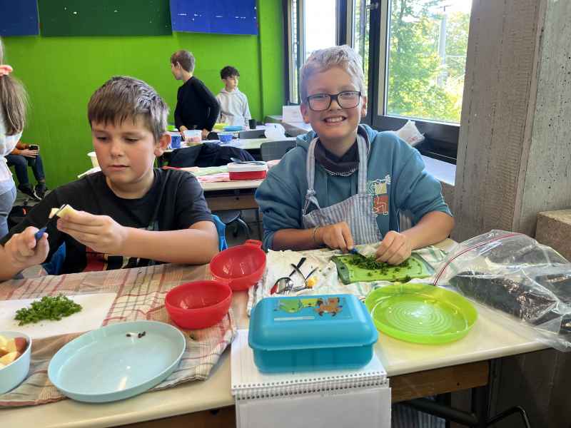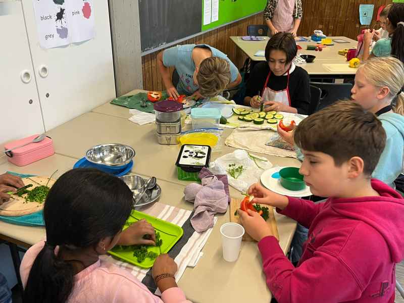Eine richtig schöne Veranstaltung hatte die Jahrgangsstufe 5 am Mittwoch, dem 8.10.2025. Zunächst wurde gemeinsam erarbeitet, was denn eigentlich gesund ist. Interessant waren die Experimente, die gemacht wurden: So hat man Mehl, Haferflocken und Zucker mit Wasser vermengt und beobachtet, was sich wie schnell auflöst! Dann ging es endlich zum praktischen Teil! Hier wurde fleißig gerührt, geschnippelt und geschnitten!