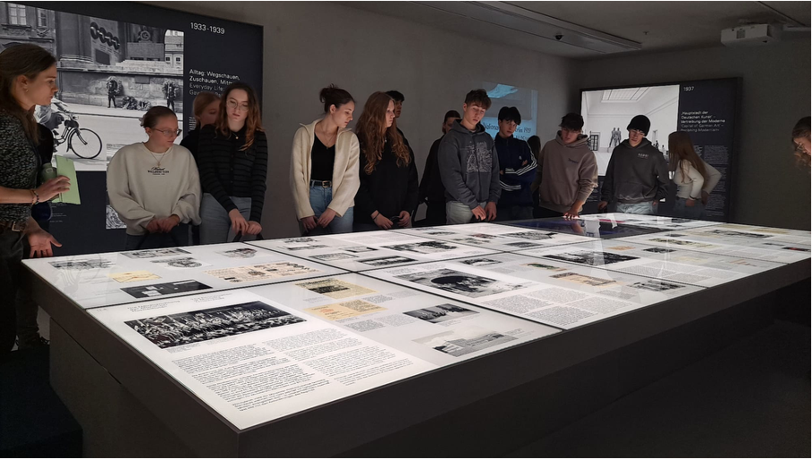 Am Morgen des 14.01.2026 machte sich der Geschichte LK der J1 zusammen mit Herrn Müsegades vom Stuttgarter Hauptbahnhof aus auf den Weg nach München. Die frühe Anreise mit dem ICE nutzten viele Schüler nochmal, um etwas Schlaf nachzuholen und Kraft für den bevorstehenden Tag zu sammeln. Nach der Ankunft am Münchner Hauptbahnhof führte uns der Weg durch die Innenstadt zum sogenannten „Braunen Haus“, dem ehemaligen Sitz der NSDAP-Parteizentrale. An diesem historisch bedeutsamen Ort befindet sich heute das NS-Dokumentationszentrum, das die besondere Rolle Münchens in der Zeit des Nationalsozialismus eindrucksvoll veranschaulicht. Im Rahmen einer informativen Führung durch die Ausstellung konnten wir unser im Unterricht erworbenes Wissen vertiefen und erweitern. Dabei erhielten wir einen anschaulichen Einblick in den Aufstieg des Nationalsozialismus in München. Anschließend begaben wir uns auf einen historischen Rundgang durch die Innenstadt und folgten der Route des Hitler-Putsches von 1923. Dieser führte uns unter anderem am Odeonsplatz und der sogenannten Drückebergergasse vorbei bis hin zum Marienplatz mit dem Münchner Rathaus. Dort angekommen stand uns noch etwas Freizeit bis zur Abreise zu Verfügung, die wir zum Mittagessen und eigenständigen Erkunden der Großstadt nutzten. Am Nachmittag trafen wir uns schließlich wieder am Münchner Hauptbahnhof, um die Heimreise anzutreten. Dank einer Verspätung des ICEs schafften wir es auch alle pünktlich zum Gleis und kamen wohlbehalten in Stuttgart an. Insgesamt erwies sich die Exkursion, vor allem in Ergänzung zum regulären Unterricht, als sehr lehrreich, abwechslungsreich und spannend. Zudem war es für uns alle ein schöner und gemeinsamer Tag in München.