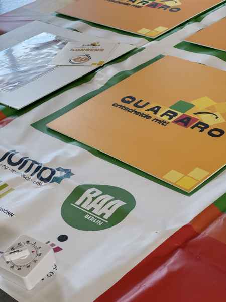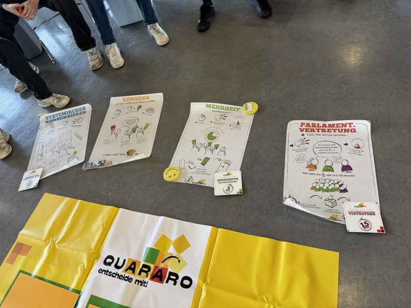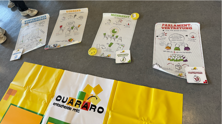 Am vergangenen Dienstag waren alle J2-Schüler*innen Teil des interaktiven Lernspiels „Quararo“, das von Demokratie, Werten und demokratischen Entscheidungsprozessen handelt. Organisiert wurde das Planspiel von den Gemeinschaftskunde-Lehrkräften, durchgeführt allerdings durch zwei Teamerinnen der Servicestelle Friedensbildung.