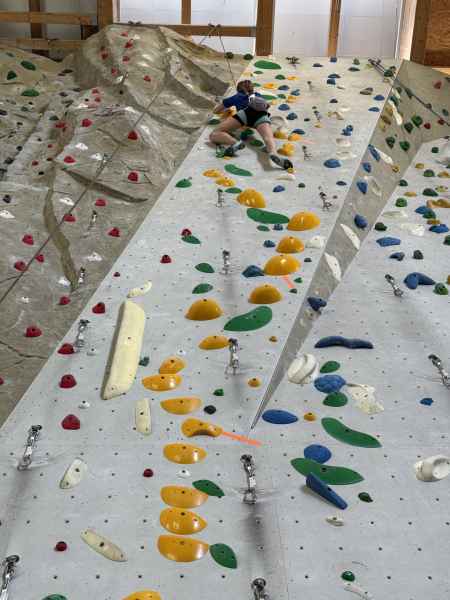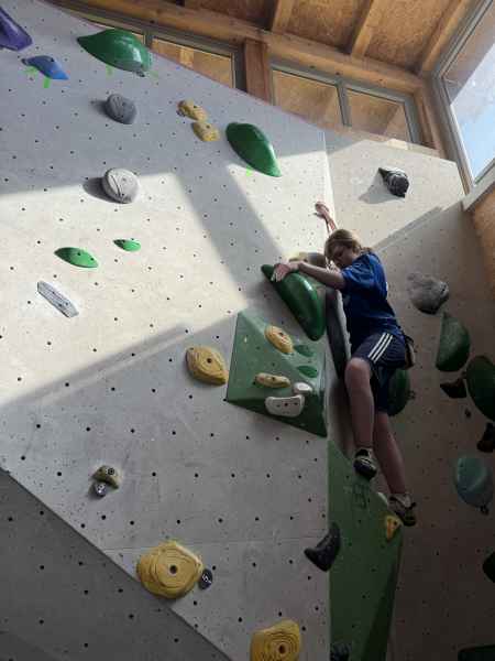 Kletternde Personen: Johanna, Matilda und Stella aus der 9b, Moritz S.-F aus der 9c.