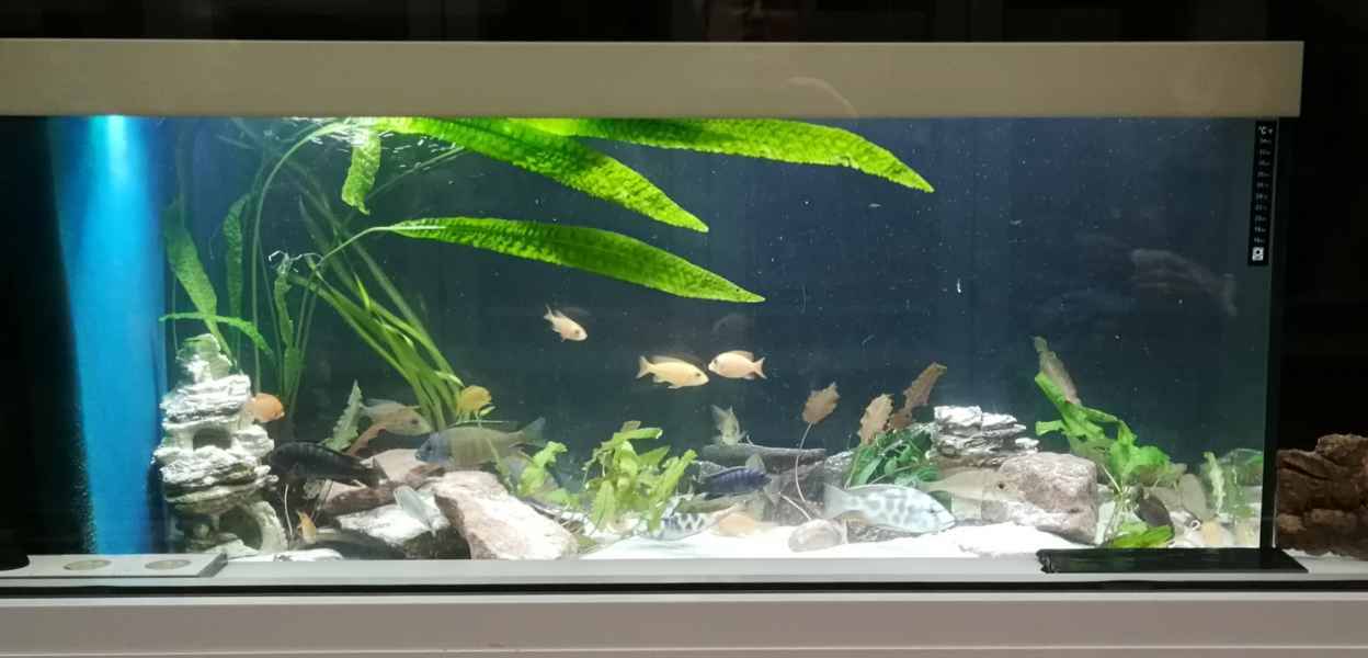 Schülerinnen und Schülern aus Klassenstufe 5 bis J2 lernen in der AG alles zur Pflege von Aquarien, Wissenswertes über Wasserchemie, Technik und viele interessante Details zur artgerechten Haltung von Fischen. Zum vorhandenen Becken mit einem Tanganjika-Biotop konnte die Gruppe zu Beginn dieses Schuljahres durch eine Beckenspende und mit Hilfe des Sponsorings des Buntbarsch-Paradies, Freudental, eine 2. Anlage, ein Malawi-Biotop einrichten.