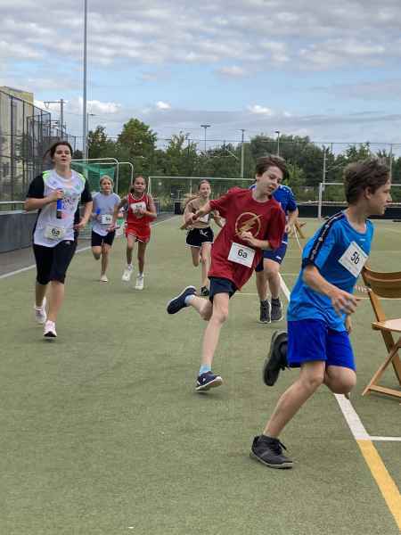 Nicht nur das KLIMA, sondern auch das WIR stand im Fokus des Spendenlaufs. Bereits im Vorhinein schlossen die Schülerinnen und Schüler zu klasseninternen Teams zusammen, um gemeinsam möglichst viele Runden zu laufen. Die Teams überlegten sich lustige Teamnamen, ein Teamtrikot und einen kreativen Staffelstab – so gab es u.a. ein Kuscheltier-Einhorn, eine Banane (die während des Laufs immer kleiner wurde), eine Schwimmnudel und sogar einem Steckenpferd! 45 Minuten lang liefen die Schüler- und Lehrerteams auf einer auf dem OHG-Gelände aufgebauten Strecke zahlreiche Runden, um das Klima zu unterstützen.